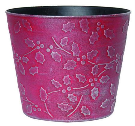 Plastic Red Holly Pot Cover 18cm